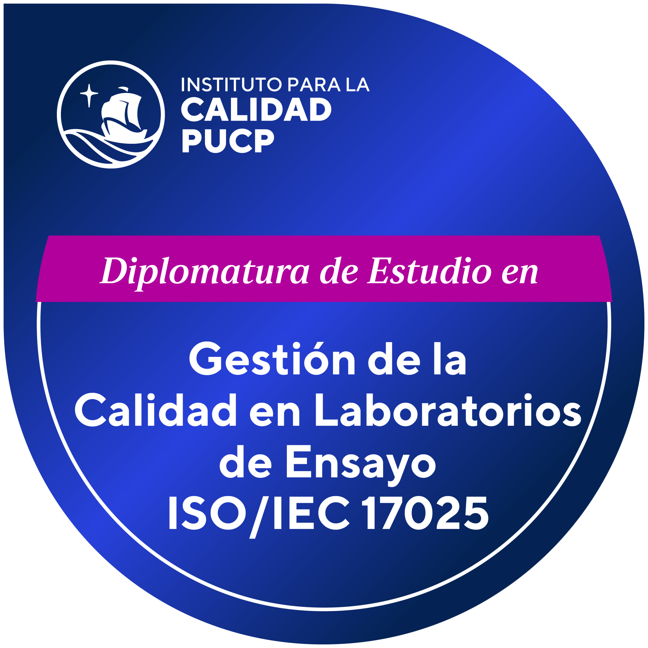 Diploma digital de Estudio en Gestión de la Calidad en Laboratorios de Ensayo ISO/IEC 17025 a nombre del Instituto para la Calidad de la Pontificia Universidad Católica del Perú.