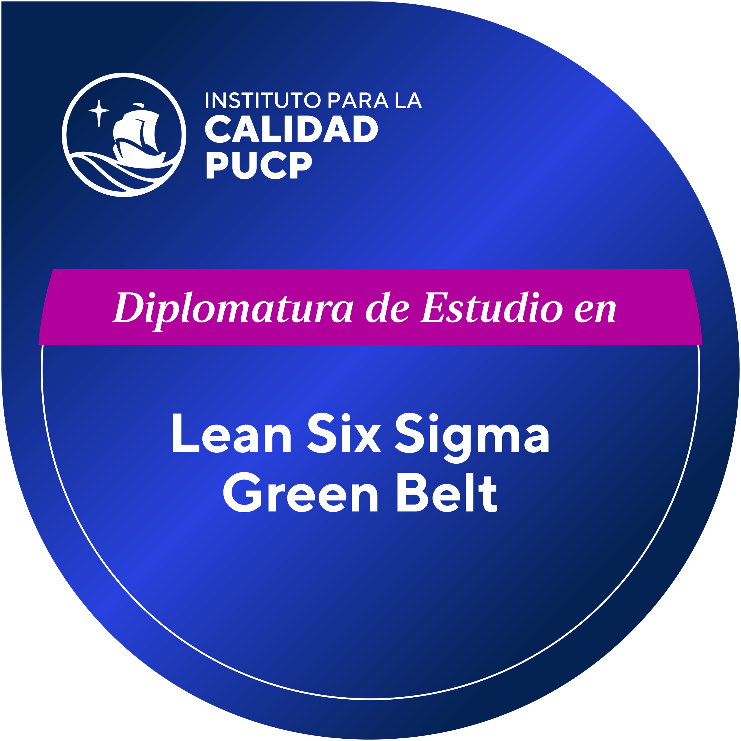 Diploma digital de Estudio en Lean Six Sigma Green Belt a nombre del Instituto para la Calidad – PUCP.